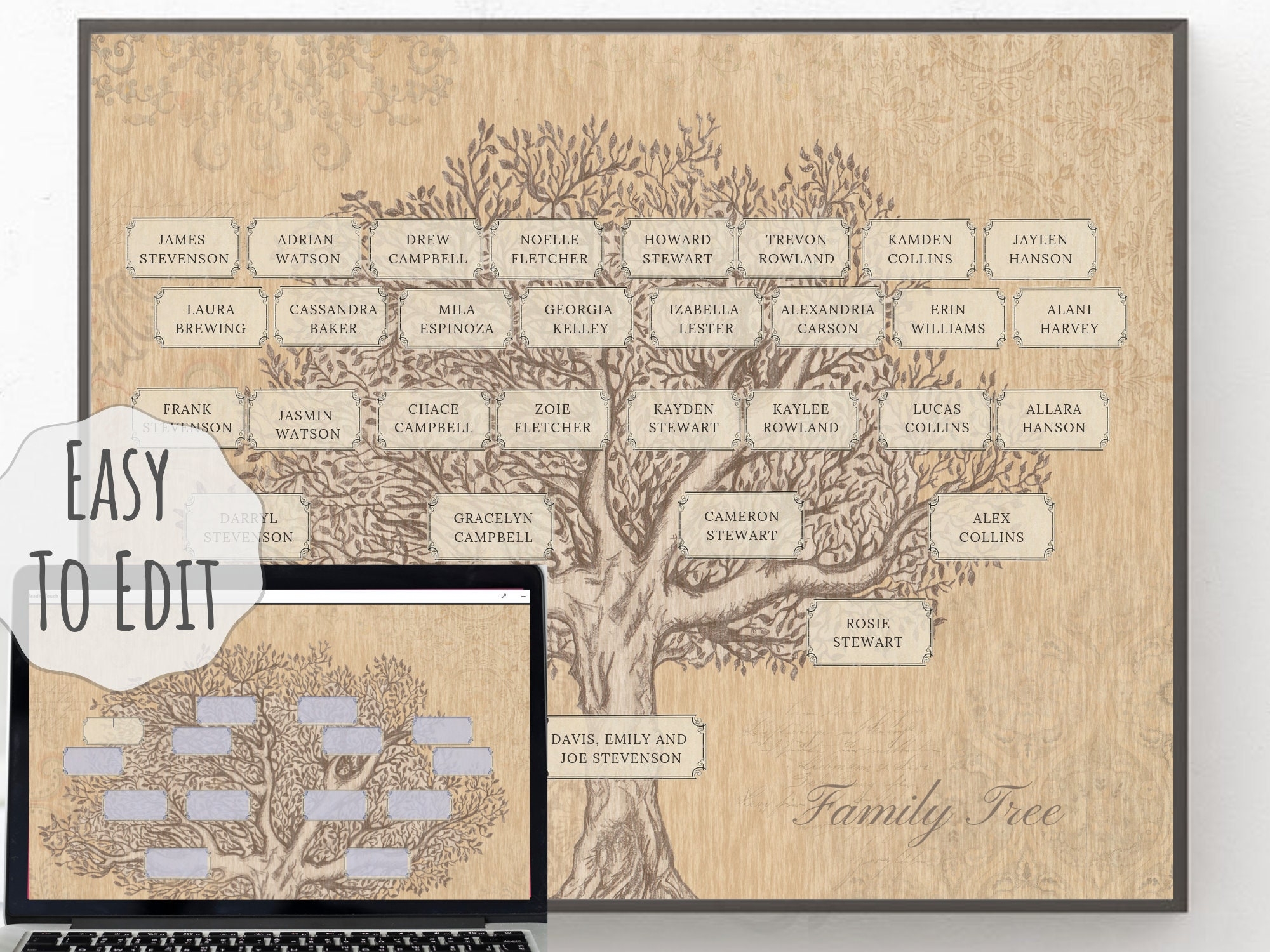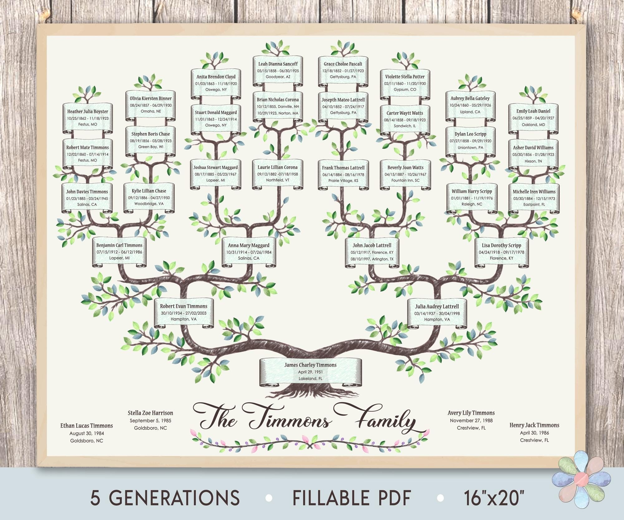 5 Generation Family Tree Template 8x10inch PDF U0026 JPG Files Instant Download Fillable Etsy UK