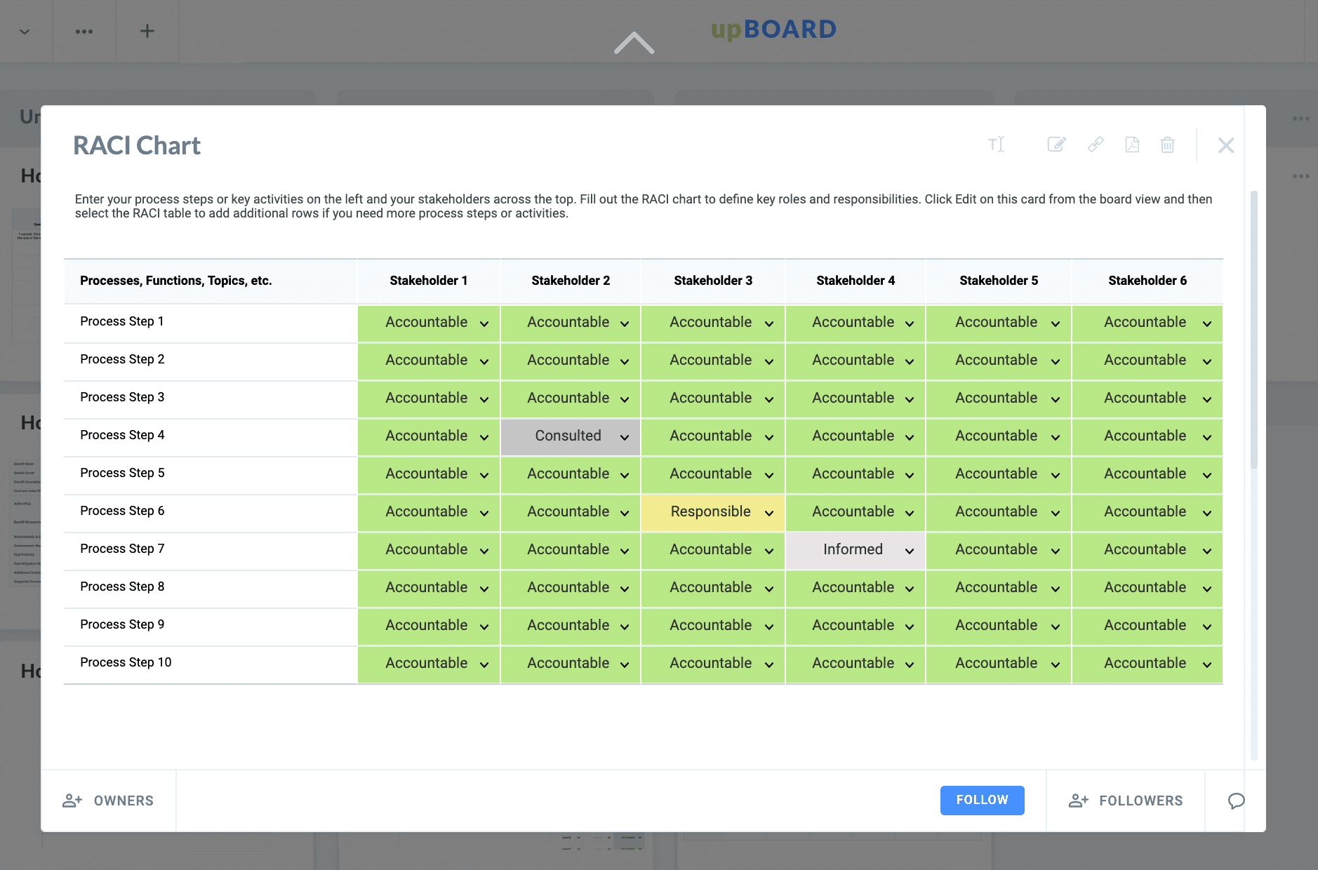 With our free RACI chart template, you can easily create a visual representation of who is Responsible, Accountable, Consulted, and Informed for each task. This will help eliminate confusion, reduce conflicts, and improve overall team productivity.