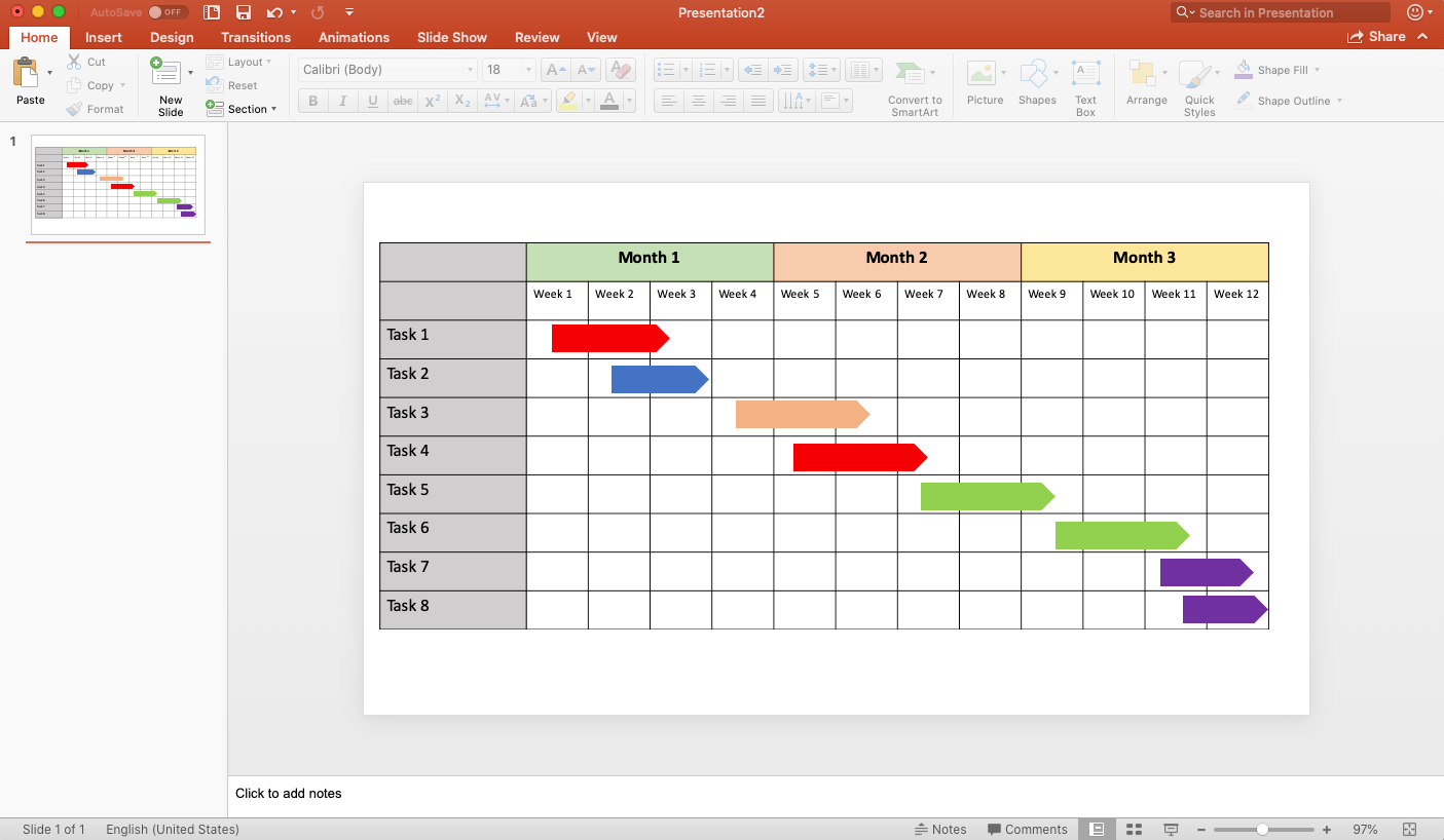 With our Gantt chart template for PowerPoint, you can easily communicate project timelines to stakeholders and team members. Keep everyone on the same page and ensure projects stay on track with this intuitive and visually appealing tool.