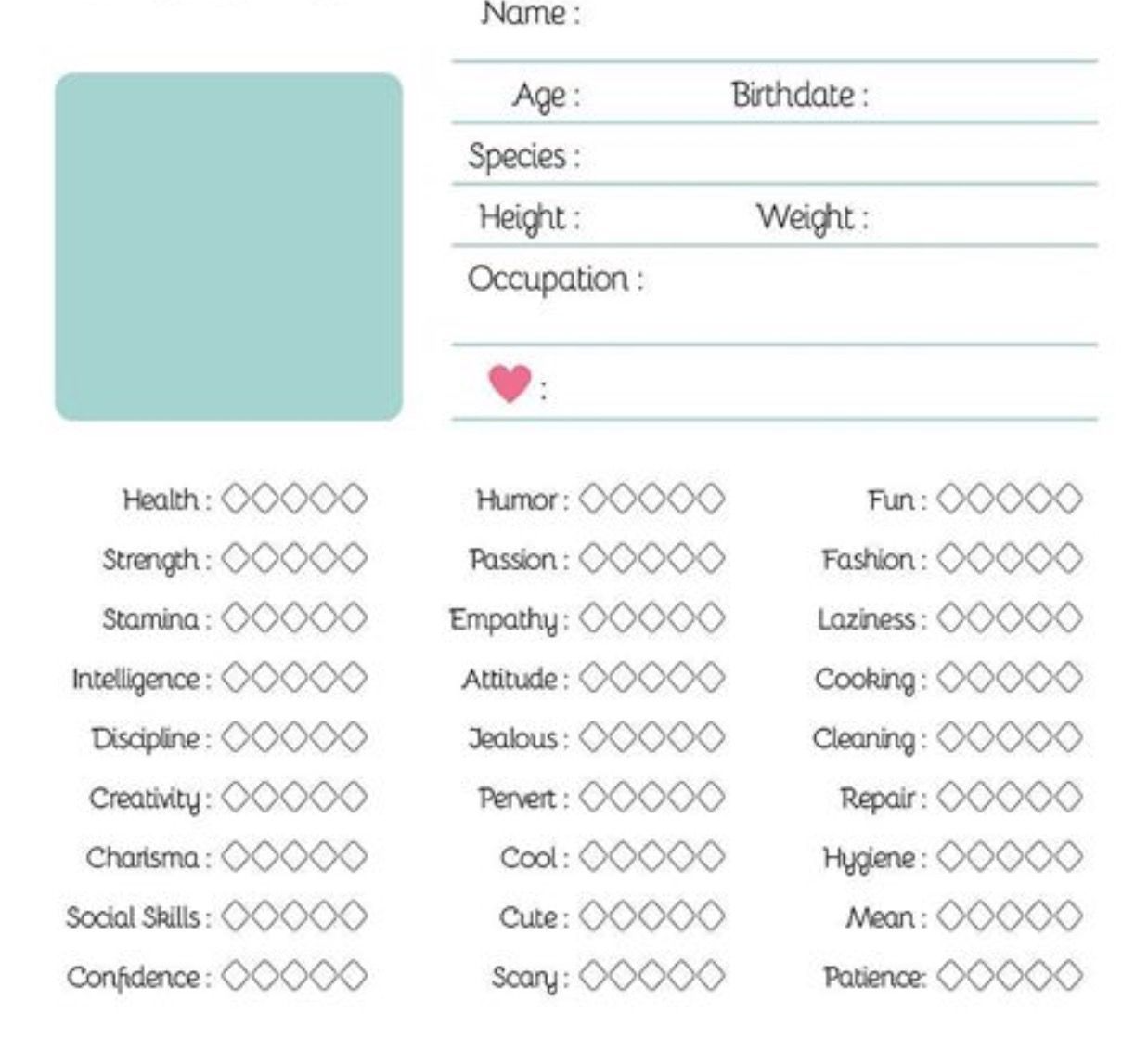 Simple OC Character Sheet Blank Template Printable Etsy