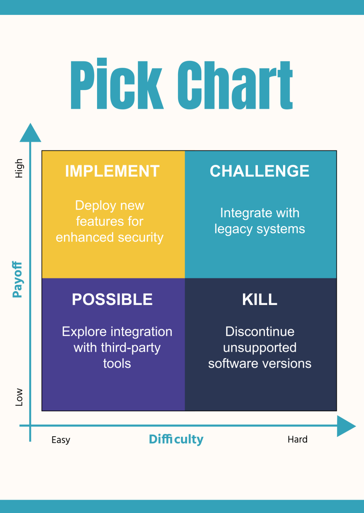 One of the key benefits of using a Pick Chart Template is its simplicity. You don’t need to be a project management expert to use this tool effectively. Simply input your tasks, assess their impact and effort, and let the Pick Chart Template do the rest. It’s that easy!