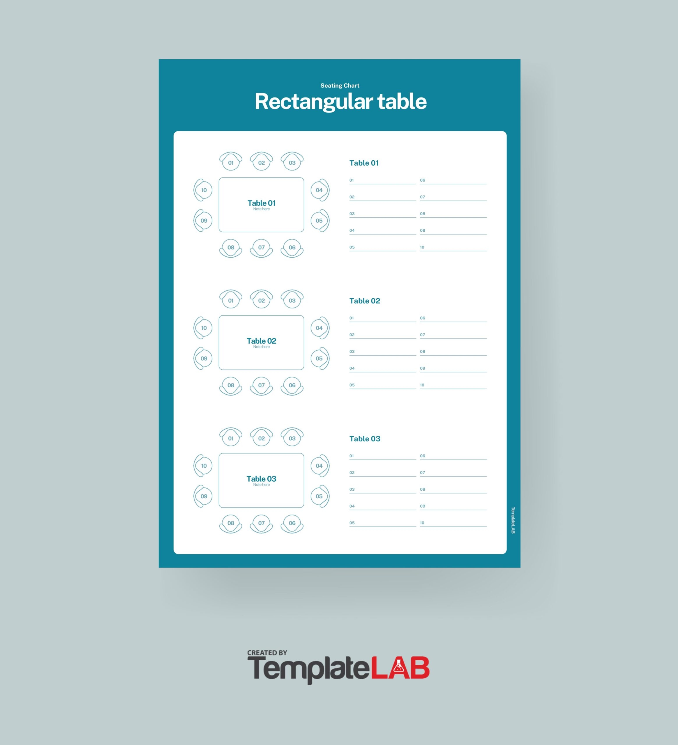 Rectangle Table Seating Chart Template