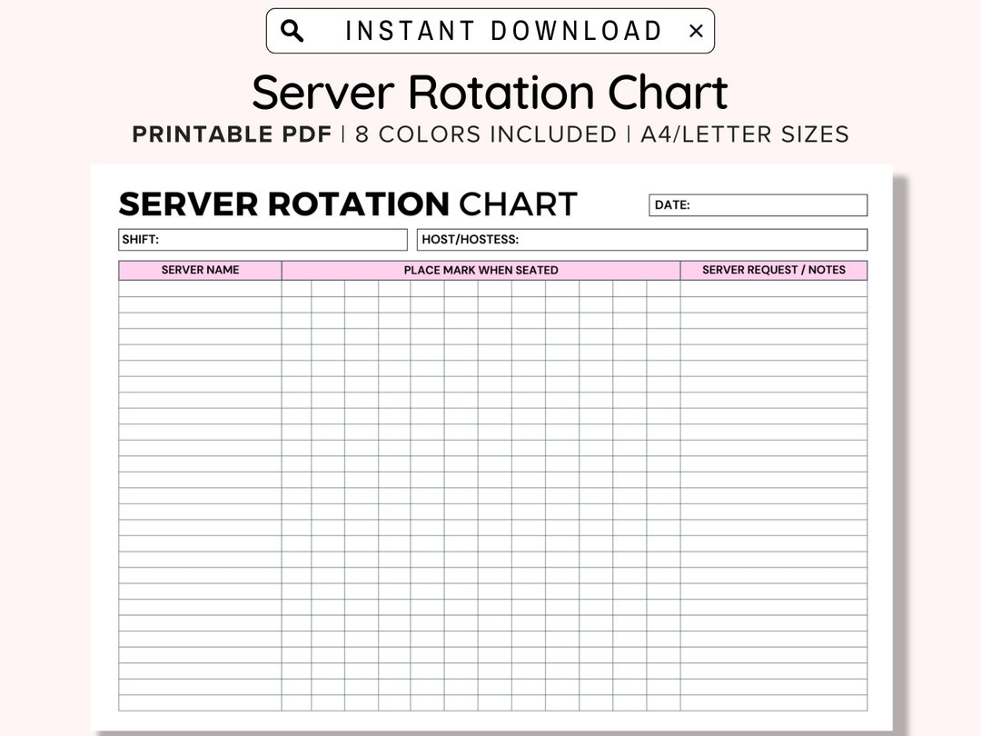 Printable Server Rotation Chart Server Chart Board Seating Chart