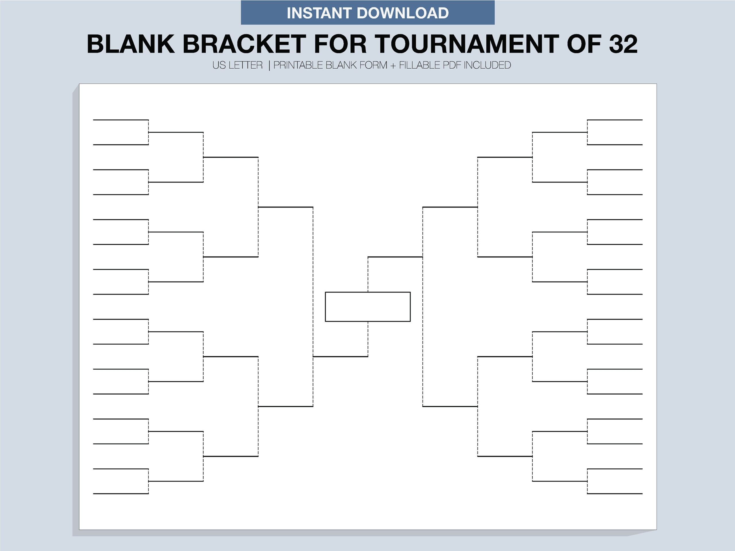 Blank Tournament Bracket Printable Fillable PDF Single
